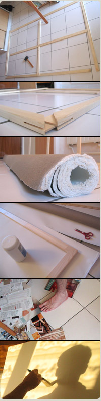 I had always bought pre-made canvas; with the idea of a next painting in mind I went to my favorite art store to find the perfect one. The range of sizes available was huge but I couldn't help this megalomania that always makes me want to make bigger things. I bought pre-made wooden frames and a huge canvas rolls, and the needed tensing grip plus the big stapler, and also collected a few tricks. The next steps are quite straightforward even for a first-timer, except that you need strong hands to keep the linen tense while you stapple. Really strong ones. I think I haven't been able to grab anything for the next 2 weeks, almost.